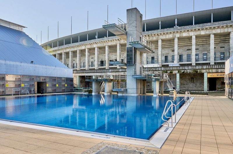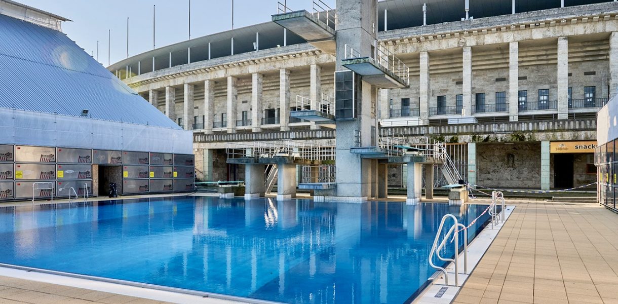 Die pompöse Naziarchitektur des Berliner Olympiaparks zeigt sich auch im Stadionfreibad und löst ambivalente Gefühle aus. Gleichwohl fühlt man sich hier beim Betreten der Schwimmarena, zwischen den hohen, historischen Zuschauertribünen…