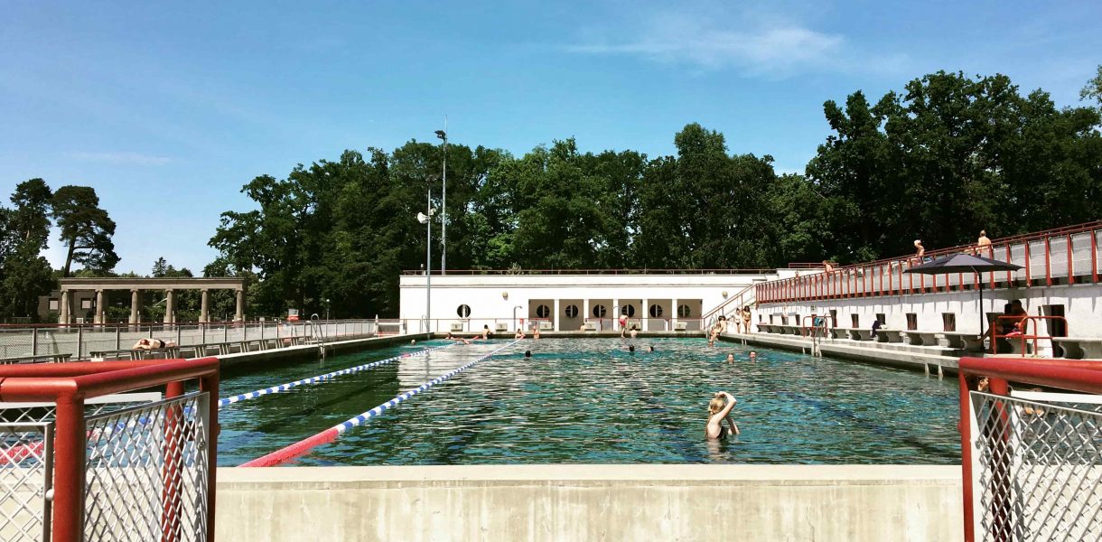 Erst auf den zweiten (oder dritten) Blick nimmt man die dunklen Bahnlinien auf dem Beckenboden wahr, die noch an das ursprüngliche Chlorwasser-Freibad erinnern. Jetzt ist das…
